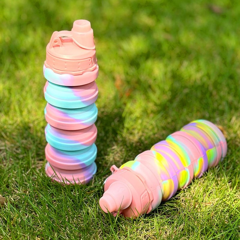 A portable spiral-fold silicone bottle that compresses for easy storage. Lightweight, leakproof, and ideal for outdoor adventures, sports, and travel. Custom color-mix and mold options available.