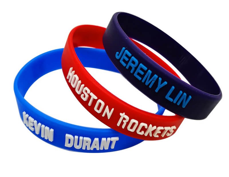 Epoxy is the way to form three dimensional logo or pattern on a silicone part surface with vivid color, you can have different colors on one part, but as it’s heavy artificial work, the production efficiency is rather low. It’s mainly applied for high-end silicone promotional gifts, like silicone wristbands, and silicone case.